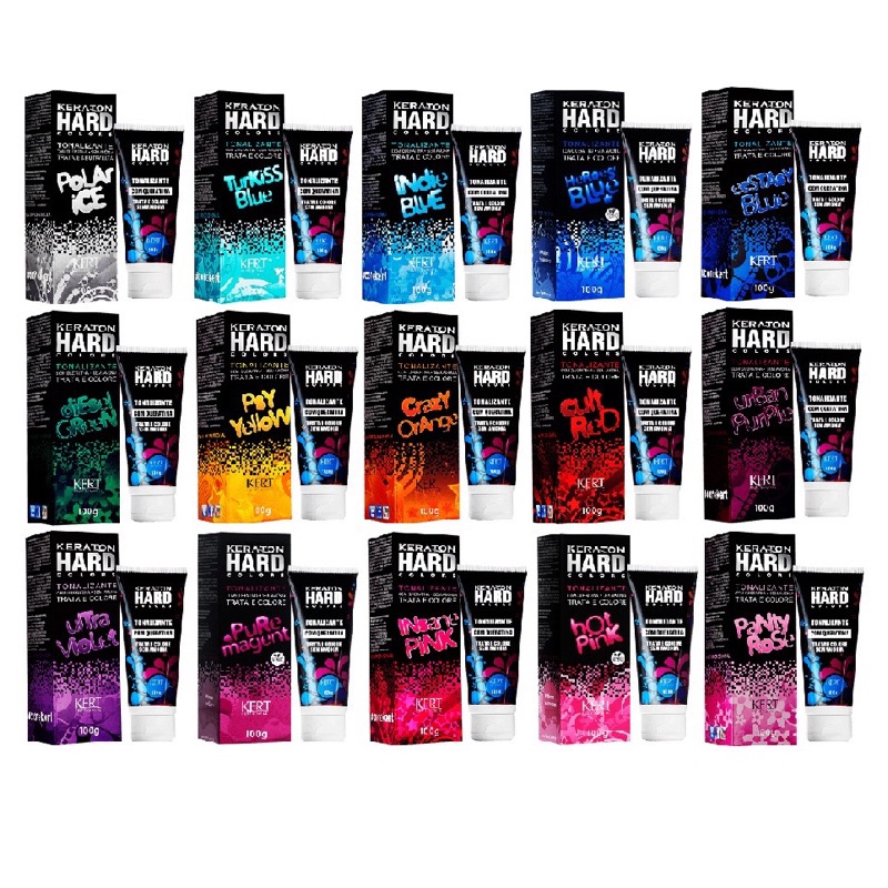 A linha Keraton Hard Colors da Kert é um tonalizante fashion sem amônia, desenvolvido para aplicação sobre cabelos descoloridos, garantindo cores vibrantes e intensas. Aqui estão algumas das opções disponíveis: